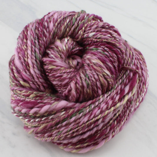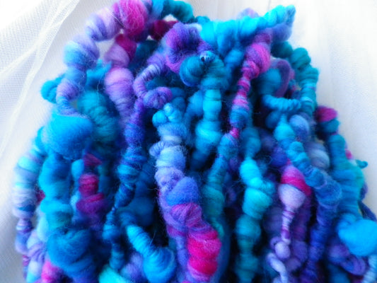 The art batts make it easy to make your own art yarn. I use a multitude of soft natural fibers like merino, Polwarth, baby alpaca, baby camel down, kid mohair locks, Teeswater locks, and several kinds of silk. You have the option of adding a little angelina and firestar for a bit of shimmer. Every one is great to spin, and most are great for felting too. Take a look at the amount of feltable fiber just to be sure.