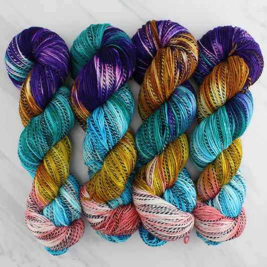 PEACOCK EYES Hand Dyed on Stained Glass Fingering - Speckled Yarn