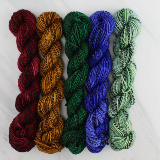 SAINT PATRICK'S DAY Mini-Skein Set of Five - Hand-Dyed 20 gram Sock-Weight Mini Skeins on Stained Glass Fingering