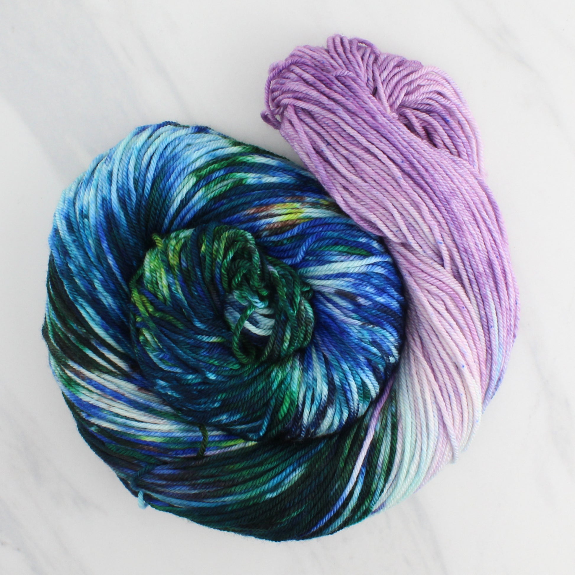 I dyed it on Squoosh DK, which is an extra-soft and squishy yarn made of 100% extra-fine superwash merino. It's great for hats, sweaters, shawls, and blankets.