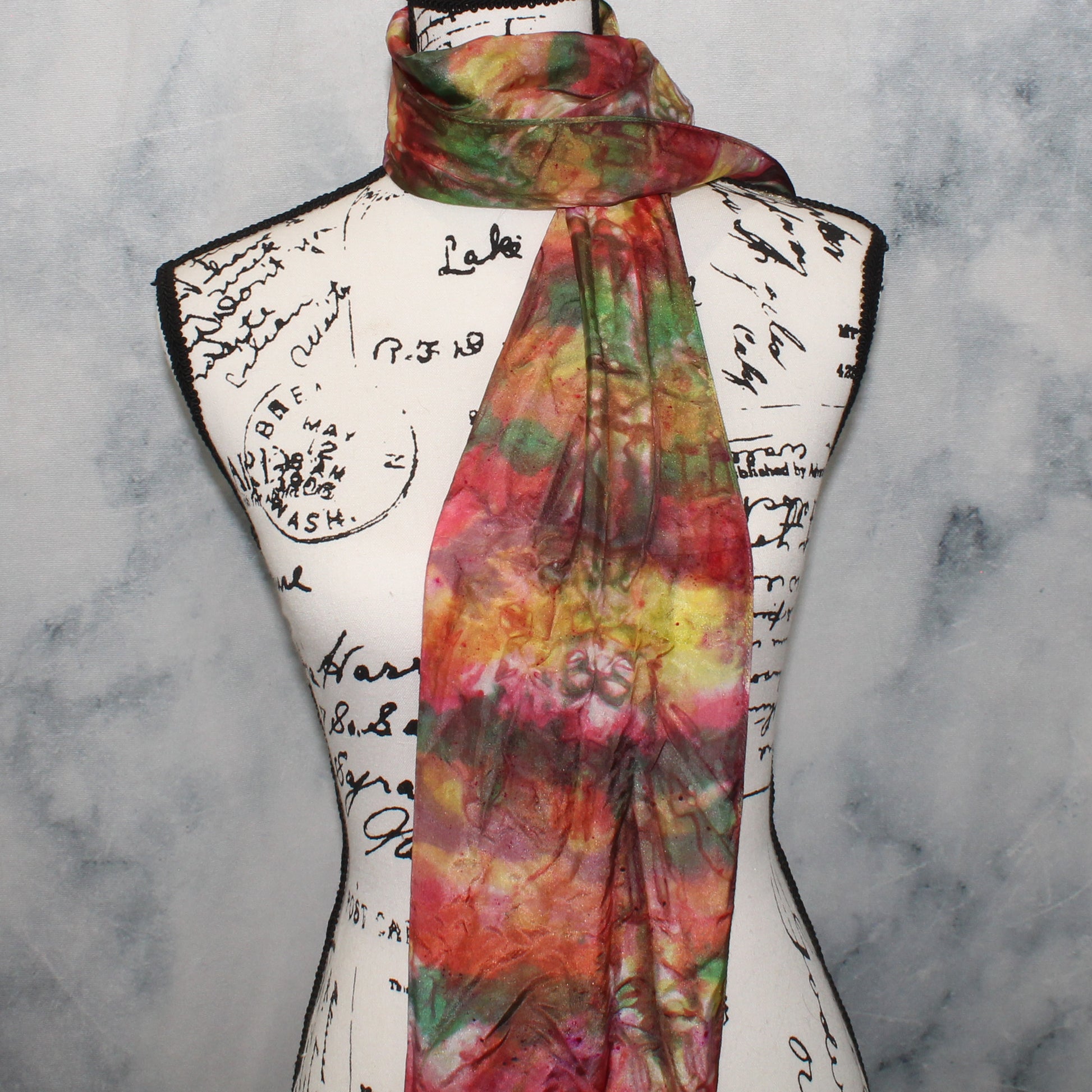 These silk scarves are the perfect way to add the finishing touch to any outfit. They are made of habotai silk, and I have hand-dyed each one. No two are ever exactly the same!
